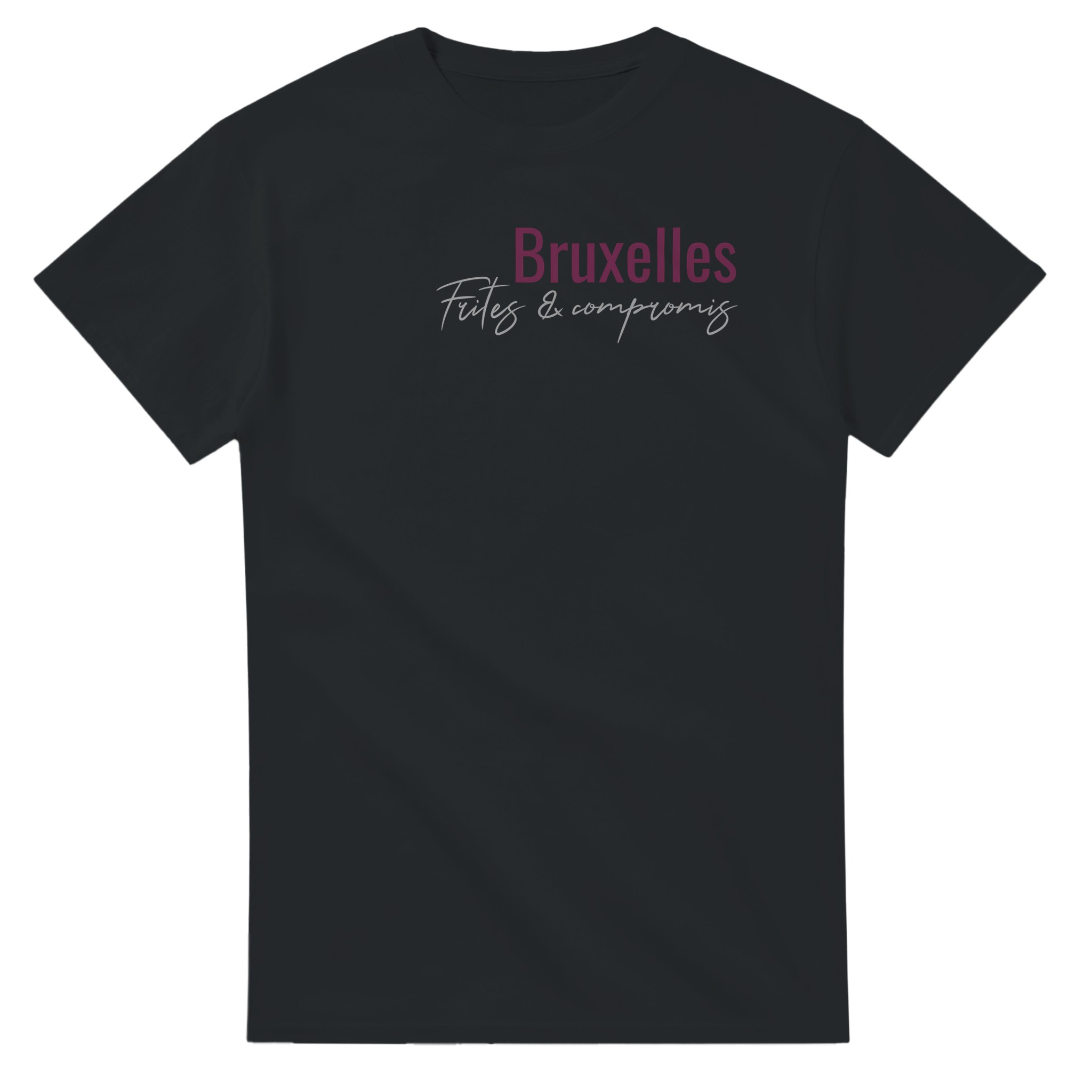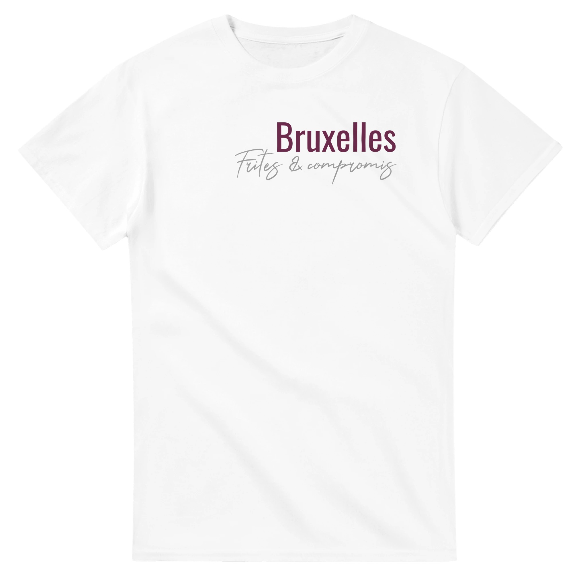 - T-shirt Bruxelles unisexe, slogan “Frites & compromis”.